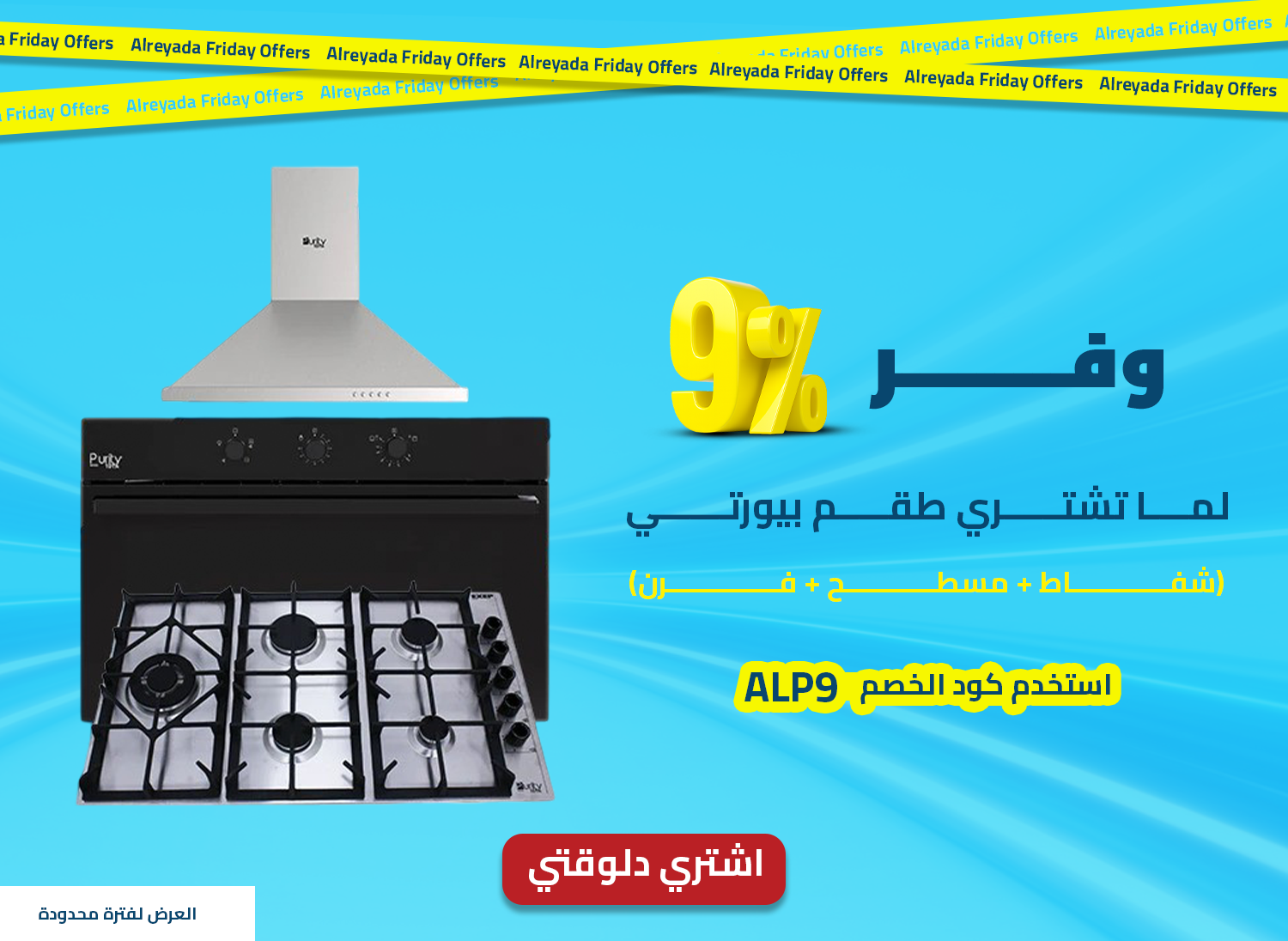 بوتاجاز بلت إن غاز 90 سم من بيورتي – 6 شعلات – إشعال ذاتي – نظام أمان –