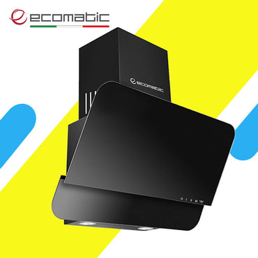 شفاط مطبخ هرمي إيكوماتيك 60 سم أسود – قوة شفط 750 م³/ساعة – فلتر معدني + كربون –