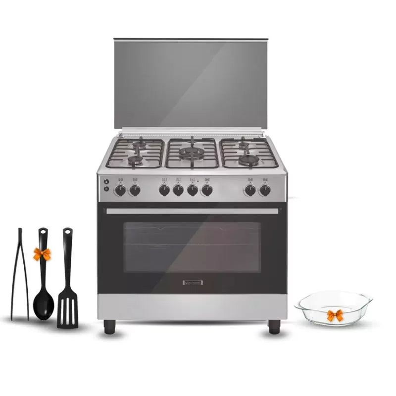 مواصفات بوتاجاز إيكوماتيك غاز فري ستاند 90 سم – 5 شعلات – ستانلس ستيل – فرن وشواية غاز – سعة 120 لتر – أمان كامل – موديل – FS9104M: