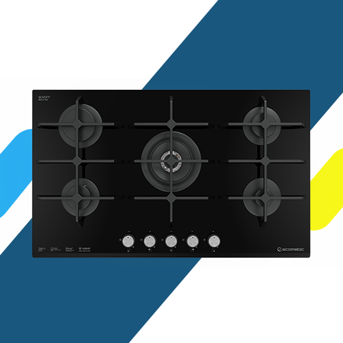 مسطح غاز بلت إن من ايكوماتيك بقياس 90 سم S957C، تصميم أنيق بسطح زجاجي كريستال من SCHOTT الألمانية، مزود بـ 5 شعلات SABAF الإيطالية عالية الكفاءة، يوفر أداءً قويًا مع نظام أمان كامل وحوامل حديد زهر متينة. الخيار المثالي لمطبخ عصري يجمع بين الأناقة والكفاءة.