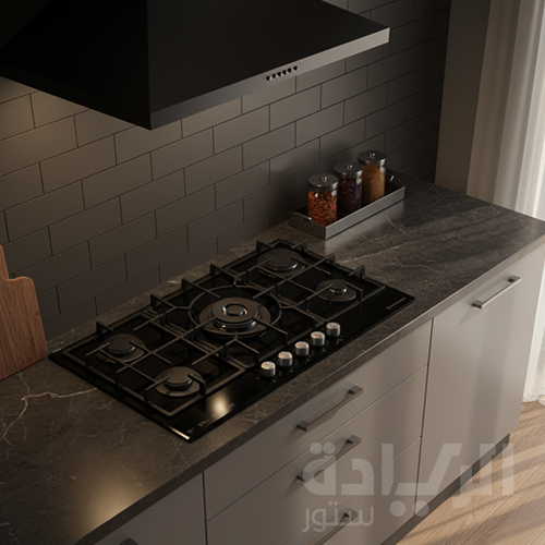 مسطح غاز بلت إن إيكوماتيك 92 سم كريستال أسود X-LARGE – 5 شعلات SABAF – إشعال أوتوماتيك وأمان كامل S997XLC