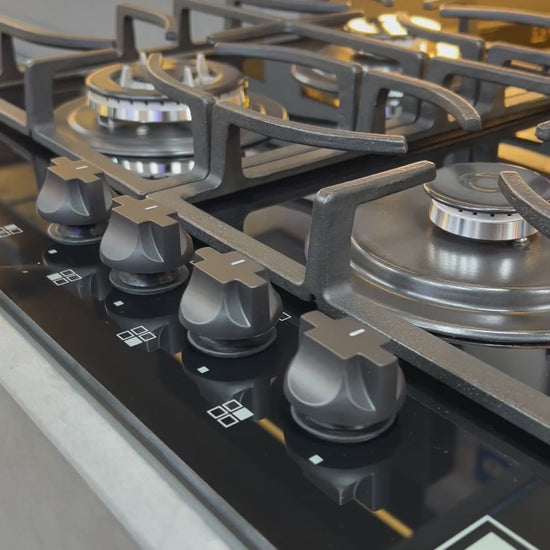 بوتاجاز بلت إن غاز بيورتي 60 سم زجاج أسود – 4 شعلات SABAF – إشعال أوتوماتيك – HPT617G