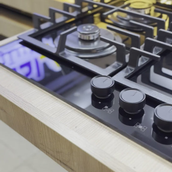بوتاجاز بلت إن غاز بيورتي 90 سم زجاج أسود – 5 شعلات SABAF – إشعال أوتوماتيك – HPT906G
