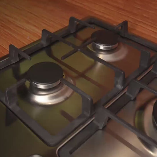 - يحتوي على 5 شعلات 4 شعلة عادية + شعلة ثلاثية للطهي السريع مع شعلات Sabaf إيطالية لتوزيع اللهب بكفاءة
