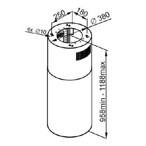 بيست ايربيست اير شفاط جزيرة استانلس اسطواني اسود - 38 سم - قوة شفط 1000م³/س- 1 موتور IME ايطالي - موديل CONO 38CM BK