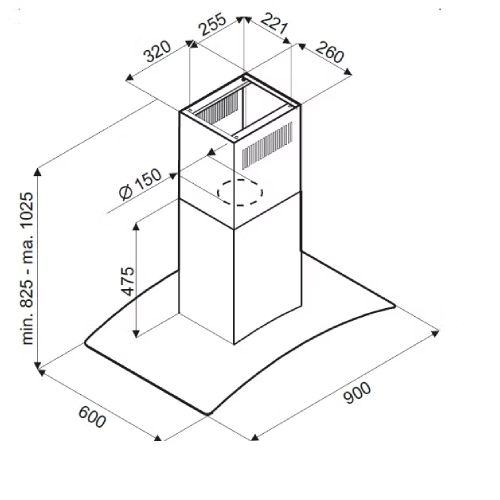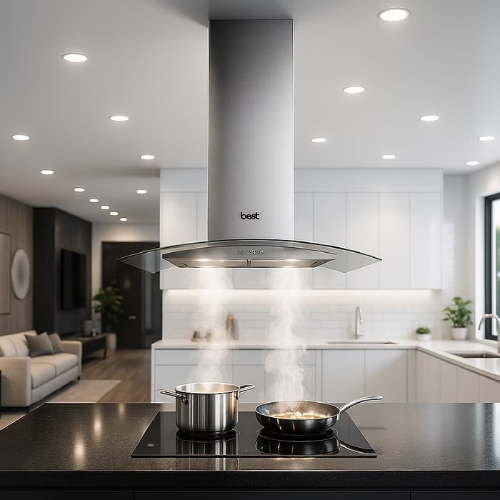 بيست اير شفاط جزيرة زجاجي فضي - 90 سم - قوة شفط 1000 م³/س - 1 موتور IME ايطالي - موديل CAPRI 90 IS INOX