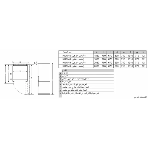 مواصفات ثلاجة بوش - 466 لتر لون أسود - موديل KGN49LB30U: