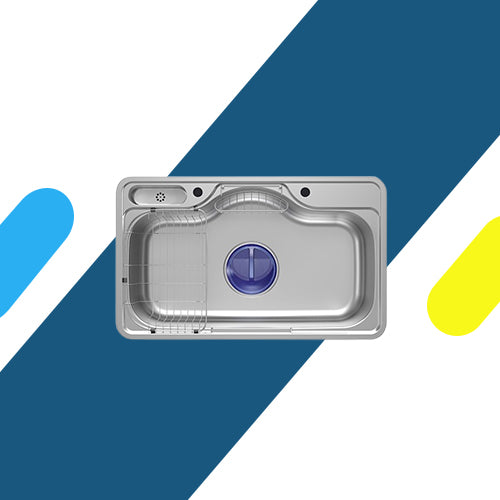 حوض مطبخ كيتشن لاين M001 استانلس ستيل تركي مقاس 850 × 515 ملم، بتصميم عصري متين ومقاوم للصدأ، مزود بسلة أطباق وسلة منظفات ستانلس.