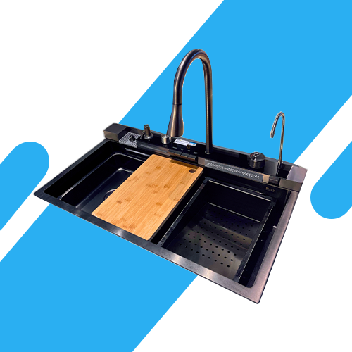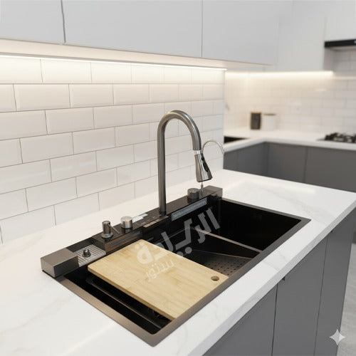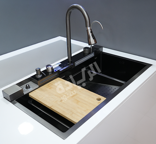 حوض مطبخ كوري من بيورتي مقاس 80*48 سم ديجيتال بزراير موديل PSM 800 BL Digital