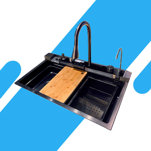 ارتقِ بمطبخك مع حوض مطبخ كورينا KSM 750 BL Digital الكوري، مصنوع من ستانلس ستيل 304 عالي الجودة، بمقاس 75×48 سم، مع تصميم أنيق ونظام تصريف ذكي يمنع الانسداد، وفلتر للشوائب لراحة أكبر. ضمان 10 سنوات.