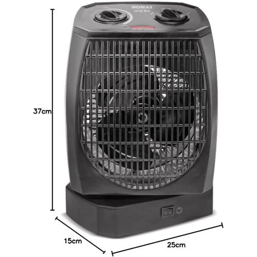 دفاية مروحة سوناي كومفي بلو MAR-910 بقدرة 2000 وات، تصميم أنيق باللون الأسود مع 3 مستويات حرارة وخاصية الدوران لتوزيع مثالي للحرارة وأمان كامل أثناء الاستخدام.