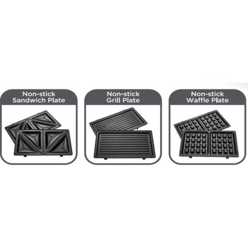 - 3 في 1: ساندوتش ميكر + جريل + وافل في جهاز واحد.