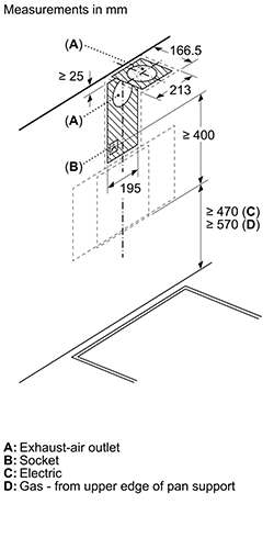 - مسافة أمان موصى بها: 55 سم فوق البوتاجاز الكهربائي – 65 سم فوق الغازي.