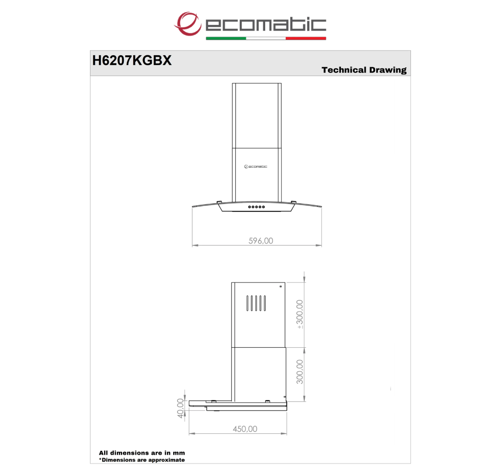 ارتقِ بتجربة مطبخك مع شفاط المطبخ حرف T من إيكوماتيك – موديل H6207KGBX, الذي يجمع بين الأناقة والتقنية الحديثة لتوفير أداء قوي ومظهر عصري فاخر.