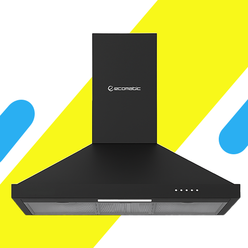 ارتقِ بمطبخك مع شفاط هرمي إيكوماتيك H9307BKB ستانلس ستيل بعرض 90 سم، قوة شفط 750 م³/ساعة، فلتر معدني سهل التنظيف، إمكانية فلتر كربون أو مدخنة، وإضاءة LED موفرة للطاقة لتجربة طهي مريحة وهواء نقي دائمًا.