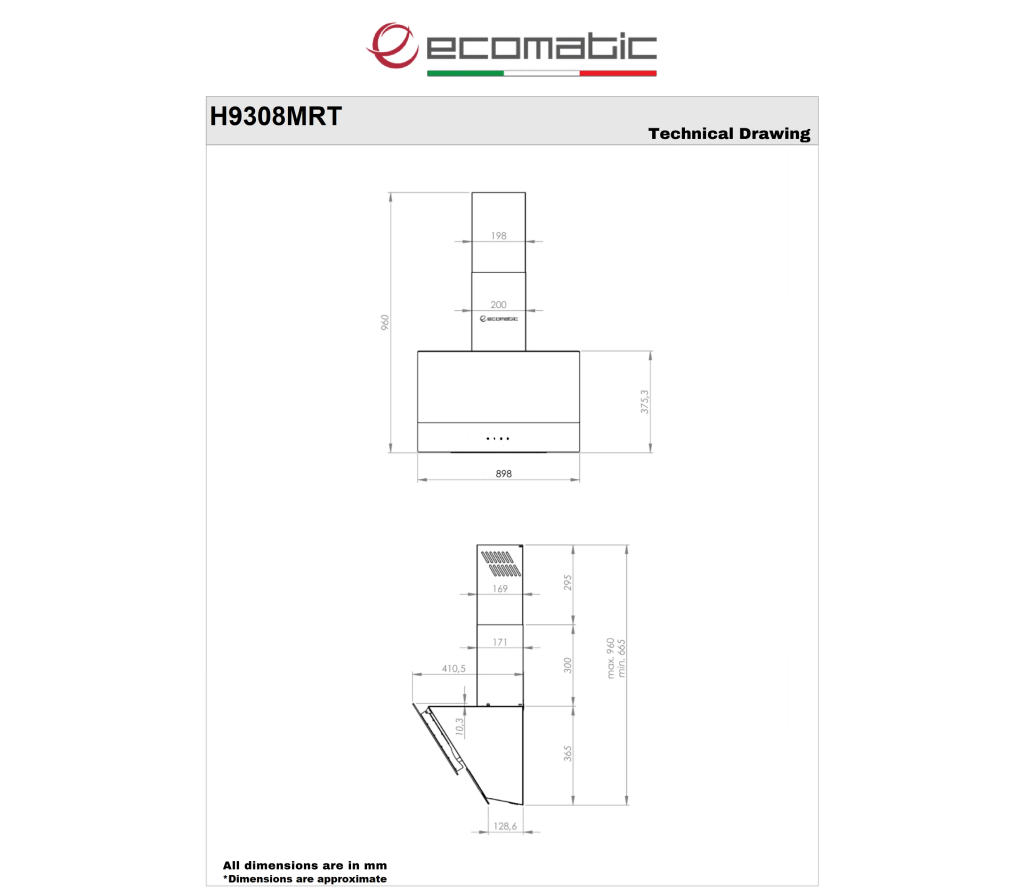 إيكوماتيكشفاط مطبخ ديكوري إيكوماتيك 90 سم كريستال أسود – قوة شفط 850 م³/ساعة – ريموت كنترول – H9308MRT