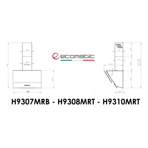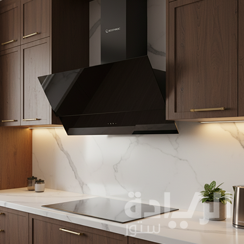 شفاط مطبخ ديكوري إيكوماتيك 90 سم كريستال أسود – قوة شفط 850 م³/ساعة – ريموت كنترول – H9308MRT