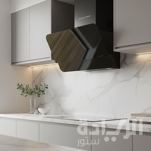 شفاط ديكوري مائل إيكوماتيك 90 سم كريستال أسود قوة شفط 1000 م³/ساعة – تحكم تاتش وريموت – H9210FAT