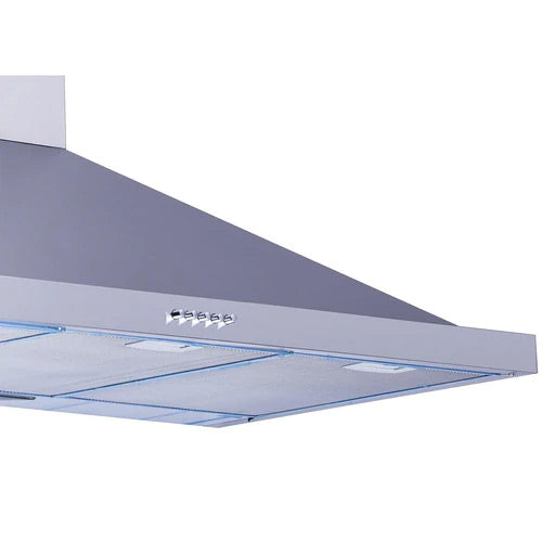 شفاط مطبخ هانز هرمي موديل Vento بقياس 90 سم، مصنوع من ستانلس ستيل عالي الجودة، مزود بإضاءة ليد قوية، وتحكم 3 سرعات لتجربة طهي نظيفة ومريحة.