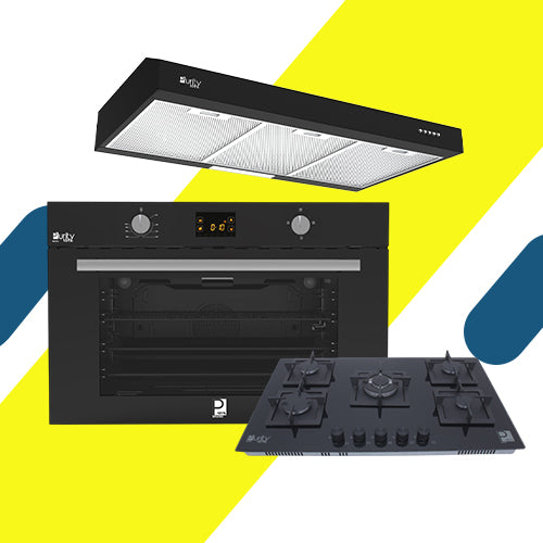 طقم بلت إن بيورتي - فرن غاز بلت إن ديجيتال بشواية – 105 لتر – موديل KPT917GG + مسطح بلت إن 6 عين 90 سم غاز موديل HPT915G + شفاط 90 سم موديل PTSLIM BL 90