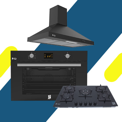 بيورتيطقم بلت إن بيورتي - فرن غاز بلت إن ديجيتال بشواية – 105 لتر – موديل KPT917GG + مسطح غاز 5 عيون 90 سم شبكات متينة موديل HPT915G + شفاط هرمي 90 سم ، قوة شفط 850 م3/ساعة، موديل PANSY PRO BL