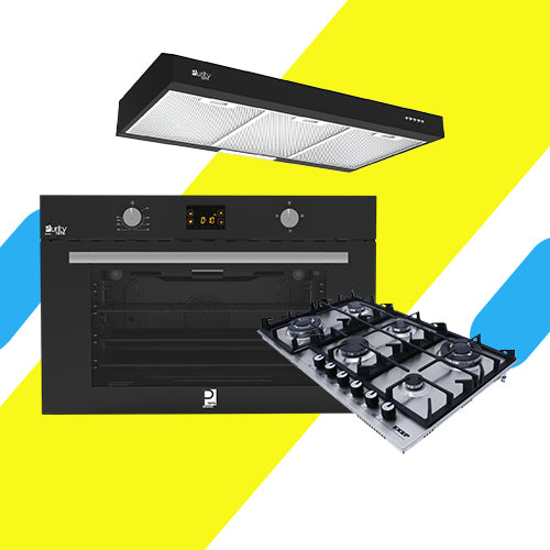 طقم بلت إن بيورتي – فرن غاز 105 لتر ديجيتال بشواية (KPD917GG GBL) + مسطح غاز 6 شعلات 90 سم (HPT904S) + شفاط 90 سم بقوة شفط 450 م³/ساعة (PTSLIM 90 BL)
