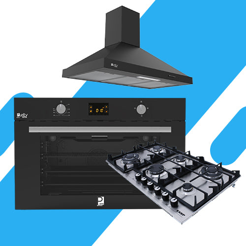 طقم بلت ان بيورتي - فرن غاز 105 لتر بشواية (KPT917GG GBL) + مسطح 90 سم ستانليس 6 عين غاز (HPT904S) + شفاط هرمي 90 سم، قوة شفط 850 م3/ساعة، ( 90 PANSY PRO BL)