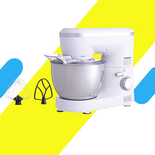 عجانة بلاك اند ديكر SM1000 – قوة 1000 واط، وعاء 4 لتر، 6 سرعات تشغيل مع تصميم متين وتشغيل هادئ. مثالية للعجن والخفق والخلط بكفاءة عالية.