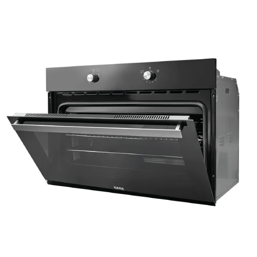 - فرن غاز مدمج مقاس 90 سم بتصميم زجاج أسود بالكامل.