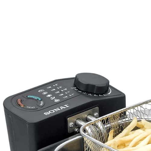 احصلي على أطعمة مقرمشة ولذيذة مع قلاية سوناي بالزيت موديل SH-811 بسعة 4 لتر وقوة 2000 واط، مع ترموستات قابل للتعديل، نافذة زجاجية للمتابعة، وفلتر للزيت للحفاظ على الطزاجة، بالإضافة إلى ضمان سنتين.