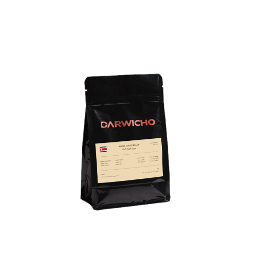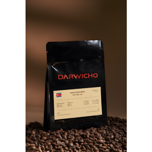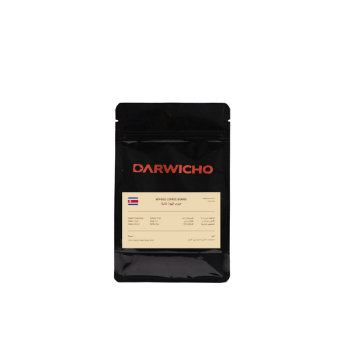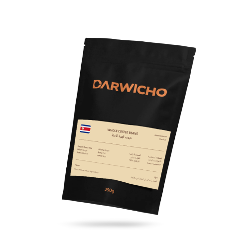 استمتع بقهوة دارويشو الكوستاريكية أرابيكا الفاخرة – حبوب كاملة 250 جم. نكهة متوازنة تجمع بين الحمضيات والعسل والسكر البني والأزهار. محمصة طازج يوميًا في Coffee Darwicho، ومثالية لعشاق الإسبريسو والفرنش برس.
