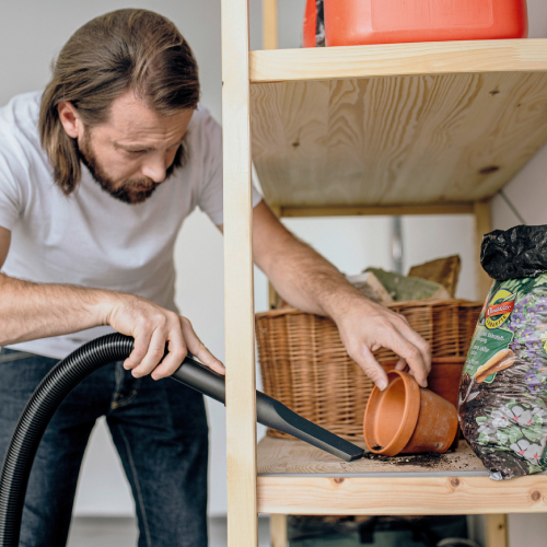 - للعربية: المكنسة دي خفيفة جداً، تقدر تشيلها بإيد واحدة وتنزل بيها الجراج تنظف دواسات وشنطة العربية بسهولة.