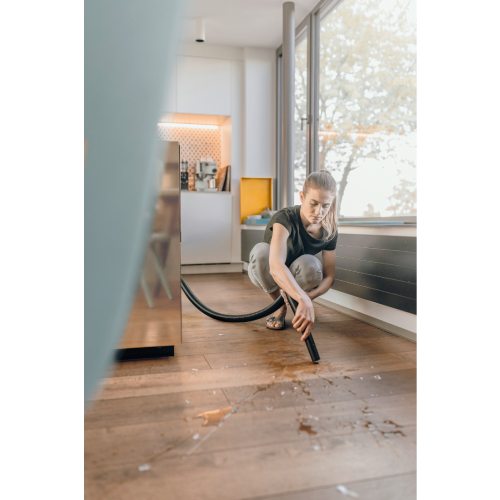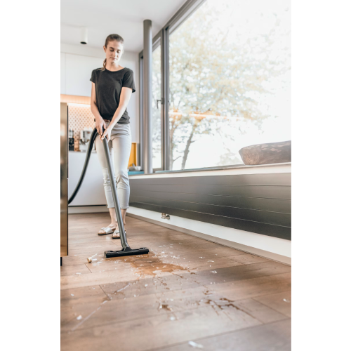 - كابل طويل (4 متر): رغم إنها مكنسة صغيرة، كارشر زودتها بكابل طويل عشان تقدر تلف بيها في الأوضة أو حوالين العربية من غير ما تفصل الفيشة كل شوية.