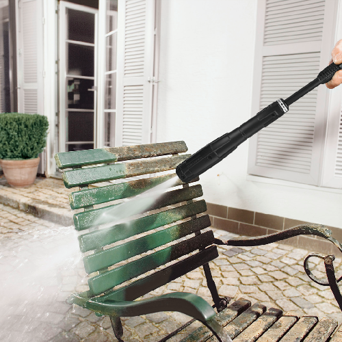 لو عندك مساحات خارجية (بلكونة كبيرة، روف، مدخل فيلا) وعايز تنظفها بالمية من غير ما تغرق الدنيا وتبهدل الفرش، أداة الـ T-Racer اللي بتيجي مع الموديل ده هي الحل السحري، بالإضافة طبعاً لاستخدامها الأساسي في غسيل العربية.