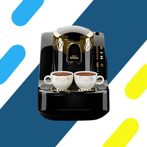 أرزوم أوكا أوتوماتيك ماكينة القهوة التركية – أسود/ذهبي – موديل OK008، تصميم فاخر بلمسة عصرية، تحضير القهوة التركية بلمسة واحدة خلال 80 ثانية أو بطريقة التسوية البطيئة (4 دقائق) لنكهة أغنى، مع خاصية التنظيف الذاتي، تنبيه صوتي وضوئي، وتحضير كوبين في نفس الوقت.
