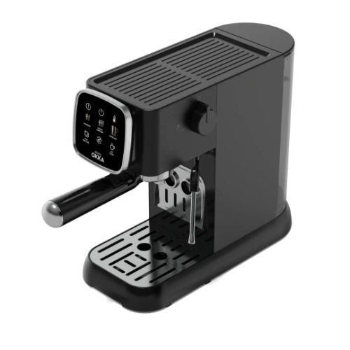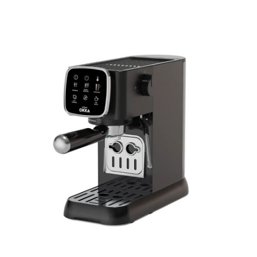 ماكينة أوكا إسبريسو OK0034-0400 سولو نصف أوتوماتيكية من أرزوم باللون الأسود والفضي– تصميم أنيق مع شاشة لمس، ضغط 15 بار، فوهة بخار، ونظام تنظيف تلقائي. مثالية لتحضير الإسبريسو، الكابتشينو، واللاتيه بسهولة في المنزل.