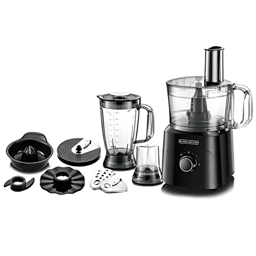 استمتع بتحضير جميع وصفاتك بسهولة مع ماكينة تحضير الأطعمة بلاك أند ديكر FX775 بقدرة 750 وات و34 وظيفة مختلفة للتقطيع، الفرم، الطحن، العجن والخلط، مع وعاء كبير 2 لتر وخلاط 1.8 لتر لتجربة متكاملة.