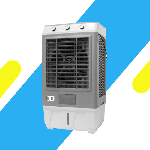 مبرد هواء أي دو 80 لتر موديل AC80L-GWH بخزان مياه كبير سعة 80 لتر و3 سرعات تشغيل. مزود فلاتر Honeycomb ومضخة مياه قوية لضمان تبريد طويل الأمد، مع مؤشر لمستوى المياه وحساس لنفاد الماء، وعجلات لسهولة النقل، صوت هادئ، وضمان سنتين.