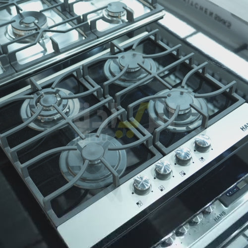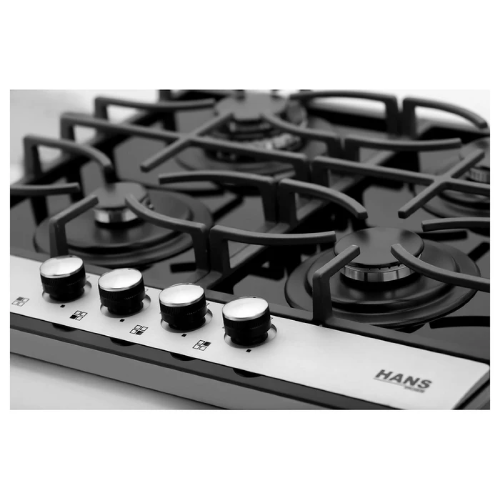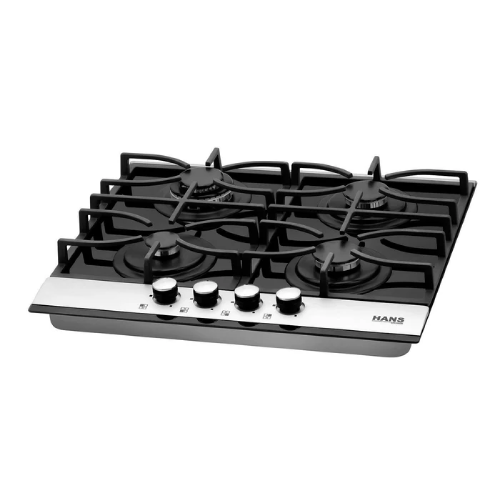 هانزبوتاجاز بلت إن غاز هانز 60 سم زجاج أسود بفريم ستانلس ستيل – 4 شعلات ساباف إيطالية – موديل - HANS 6220-19