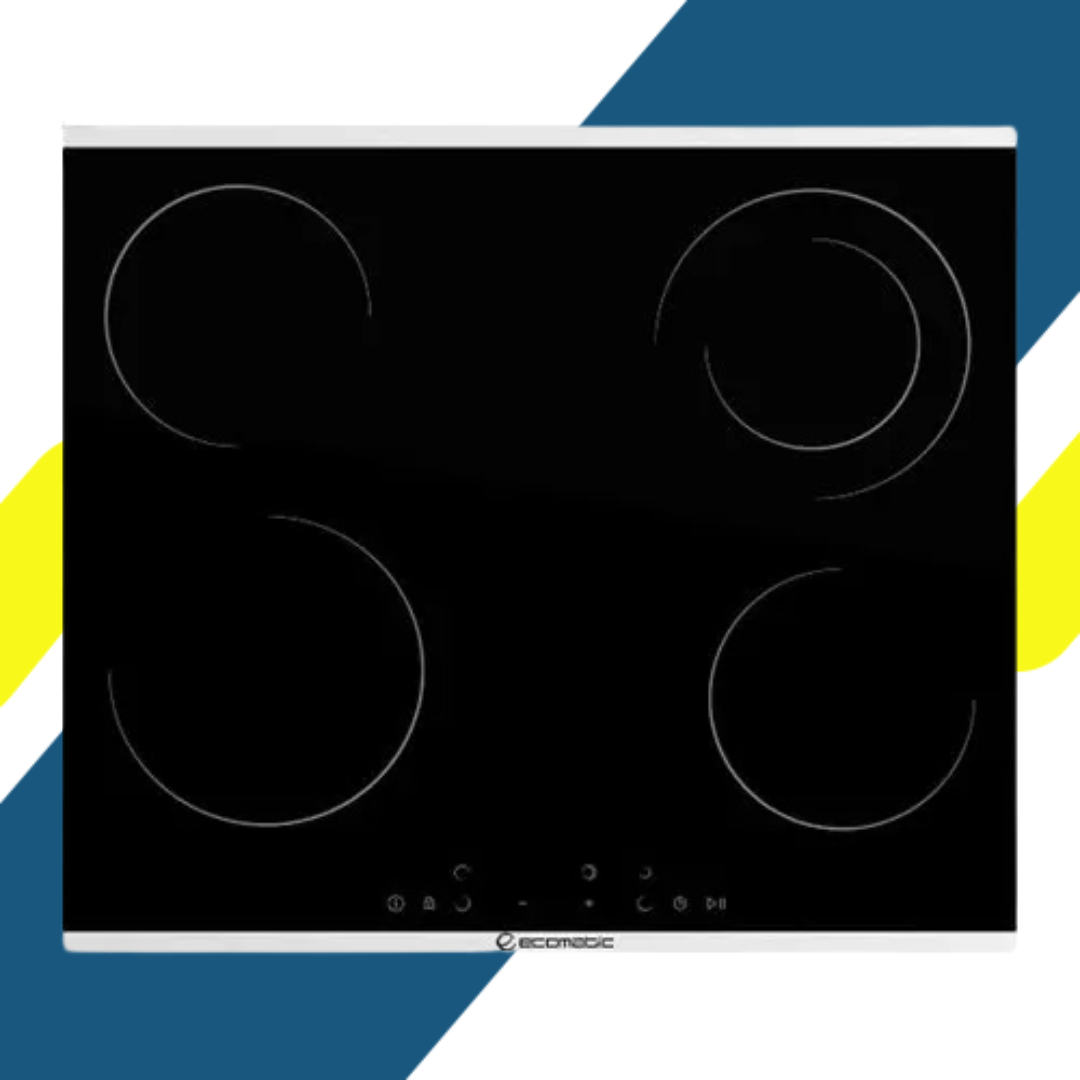 مسطح كهرباء فيترو سيراميك من إيكوماتيك مقاس 60 سم V6604TDZ، مزود بـ 4 شعلات ديجيتال باللمس و9 مستويات حرارة. تصميم عصري، أمان كامل، وكفاءة عالية في استهلاك الطاقة.