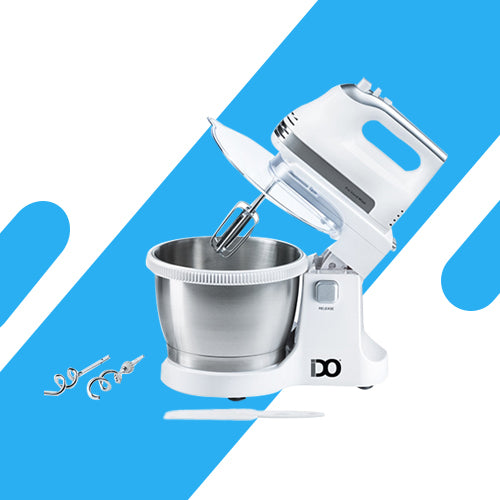 مضرب بيض بالعجان أي دو MB500-WH – قوة 500 واط، سعة 3.5 لتر، 5 سرعات مع وظيفة تربو. يمنحك أداءً قويًا لتحضير العجين والحلويات والمخبوزات بسهولة وسرعة.