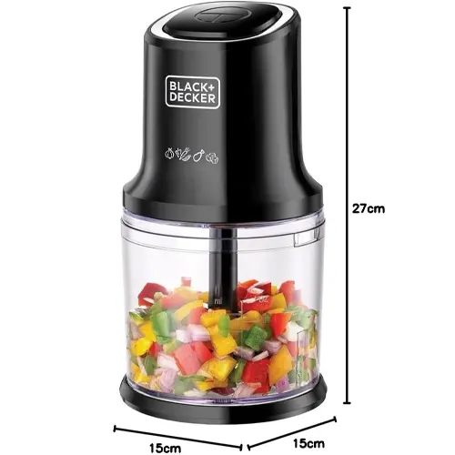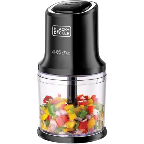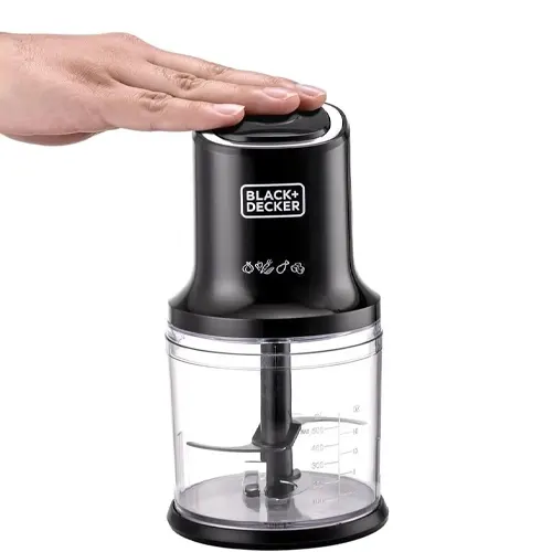 مفرمة بلاك آند ديكر FC500 بسعة إجمالية 900 مل وقوة 500 وات، مثالية لفرم الخضروات والمكونات بسرعة وكفاءة، مع تصميم مدمج وشفرات حادة من الاستانلس ستيل.