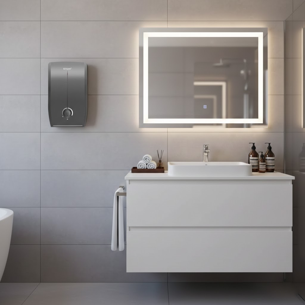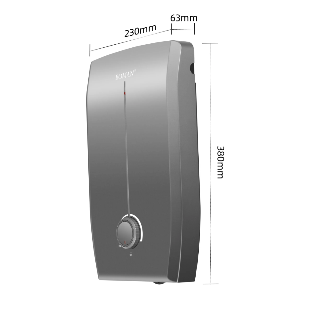سخان بومان (Boman) الـ 11 كيلو الفضي هو الاختيار الأول لأي حد بيدور على "الشياكة" مع "الأداء القوي". السخان ده مش محتاج خزان ميه، وبحجمه المدمج ولونه الفضي اللامع هيغير شكل الحمام تماماً.