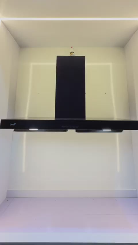 شفاط المطبخ بيست اير T ULTRA 4X BK 90 سم حرف T مزود بموتور إيطالي قوي يوفر قدرة شفط تصل إلى 1200 م³/س لضمان إزالة البخار والدهون والروائح بشكل فعّال.