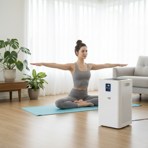 - الرصد (Monitoring): عين الليزر في الجهاز مش بس بتشوف التراب، دي بتديك قراءة ديجيتال دقيقة لمستوى التلوث (PM 2.5) على الشاشة.