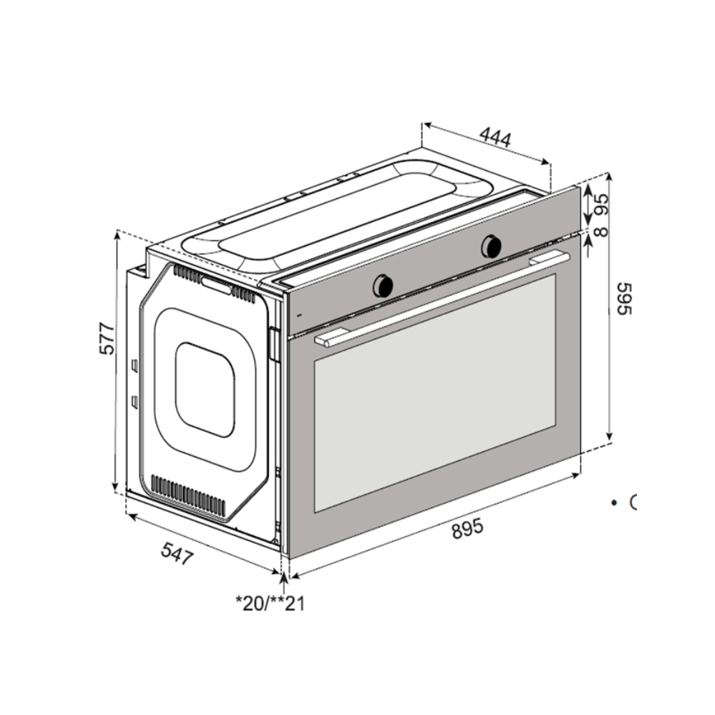 - زجاج SCHOTT ألماني: زجاج الباب ثلاثي الطبقات يتحمل درجات الحرارة العالية ويحافظ على برودة المطبخ من الخارج.